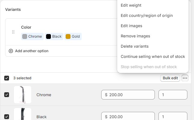 - 找到 **Bulk editor** 或者直接看 **Variants** 列表(如果有多个规格)。