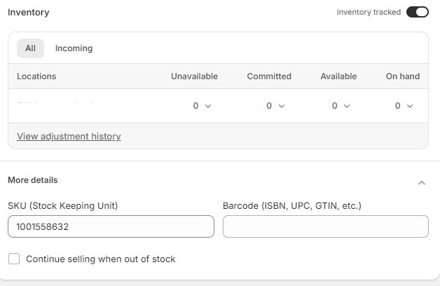 - 勾选或取消勾选:**Continue selling when out of stock**(缺货后继续销售)。